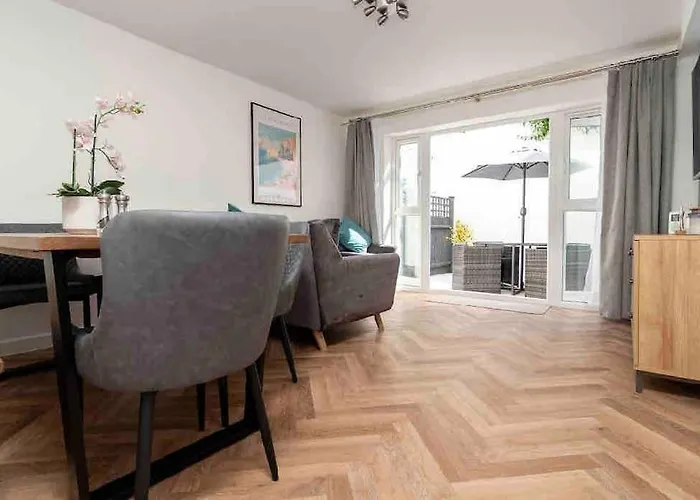 La villa Lovely 4 Bed House Central Bournemouth Villa se encuentra aproximadamente a 25 minutos a pie de Arts University Bournemouth y permite un rápido acceso a Bournemouth Library. Servicio de tetera/cafetera, TV de pantalla plana con canales vía satélite y detectores de humo son proporcionados en las habitaciones de esta villa.
